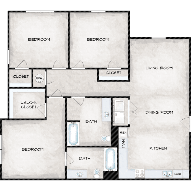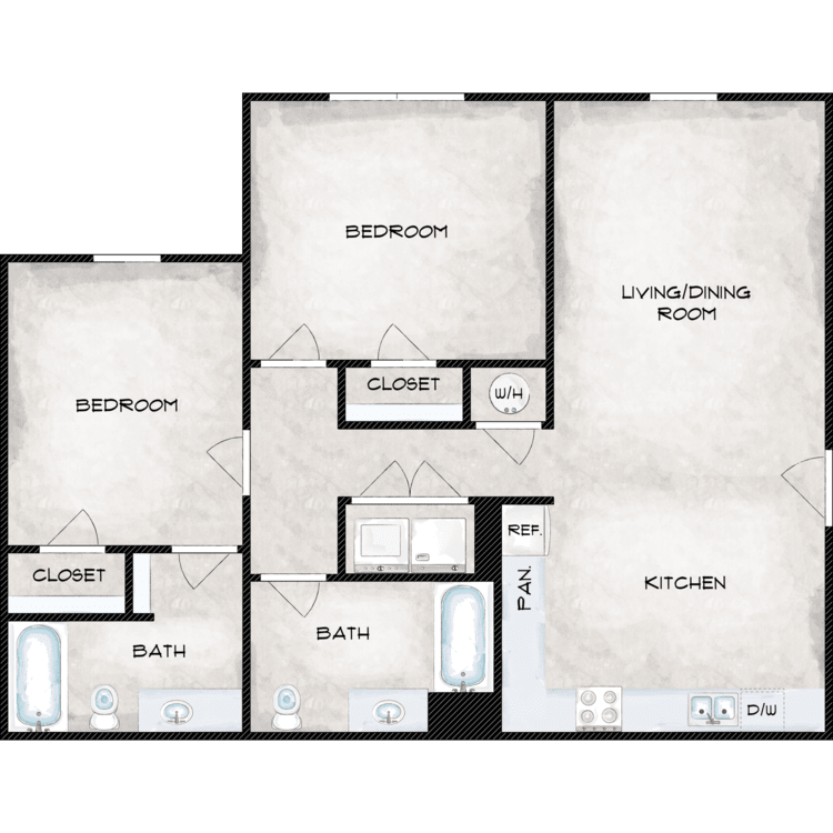 Explore our one, two, and three-bedroom apartments for rent, featuring in-home washers and dryers. Modern all-electric kitchens make cooking a convenient and enjoyable experience. Generously sized bedrooms offer ample space for relaxation. Experience the ease of a serene environment throughout the community.